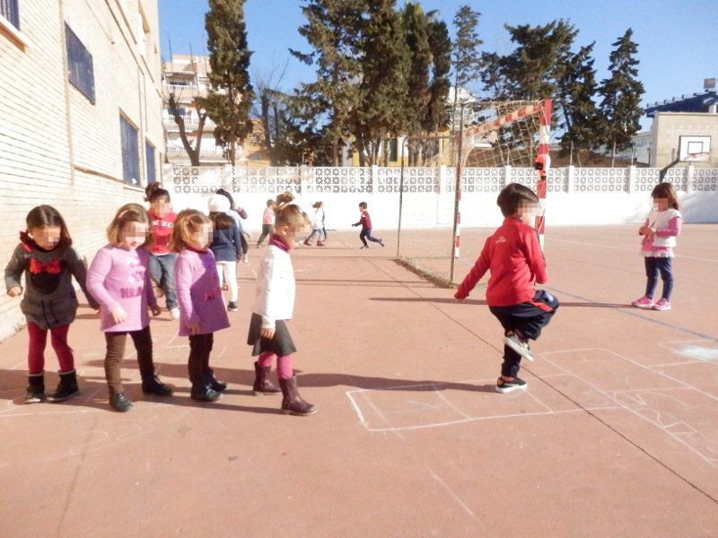 Este juego tan sencillo de practicar para muchos niños, resulta de mucha complejidad para niños que poseen problemas de dispraxia puesto que ellos deben reforzar sus músculos, equilibrio y coordinación. También se puede añadir la regla de que se debe rebotar la pelota dos veces antes de atraparla, que solo se debe rebotar delante de la persona, u otras normas. El juego comienza tirando una piedra pequeña («tejo») dentro de la casilla 1 sin que toque los bordes de la misma. El juego, si bien tiene marca competitiva, permite reforzar lazos y alianzas entre los niños. Se deben enumerar los cuadrados del uno al nueve.